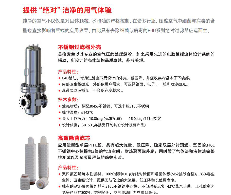 兩級(jí)壓縮空壓機(jī)廠家純凈的空氣不僅僅是對(duì)固體顆粒、水和油的嚴(yán)格控制,在諸多行業(yè),壓縮空氣中細(xì)菌與病毒的含量也直接影響著后端的應(yīng)用效果。由此具有去除細(xì)菌與病毒的F-U系列過濾器應(yīng)運(yùn)而生。